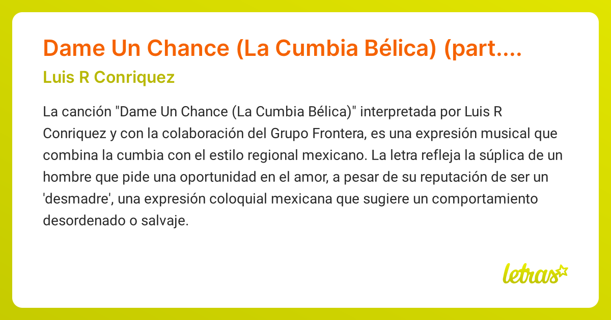 Significado de la canción Dame Un Chance (La Cumbia Bélica) (part