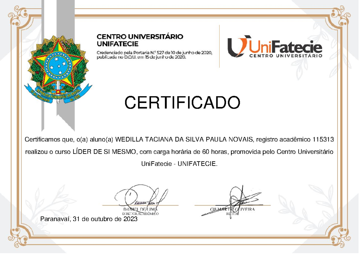 Certificado Líder de si mesmo - Nutrição - CERTIFICADO Certificamos que