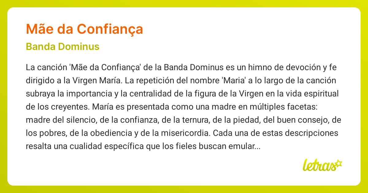 Significado de la canción MÃE DA CONFIANÇA (Banda Dominus) - LETRAS.COM