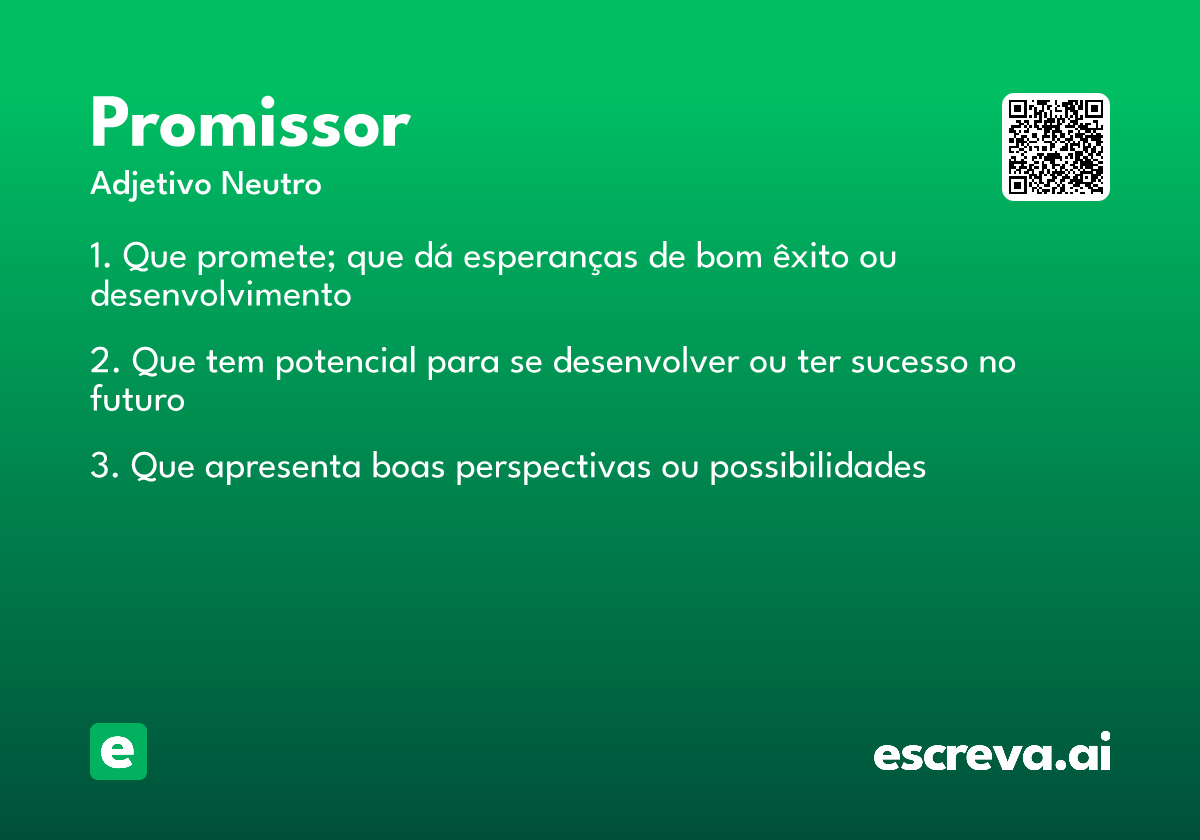 Vale notar que a promessa de sucesso não se traduz necessariamente em garantia. "Promissor" nos convida a acreditar no potencial, a reconhecer as oportunidades e a agir com entusiasmo para transformar essas possibilidades em realidade.