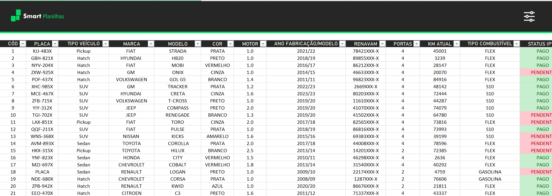 - **Facilidade na hora da venda:** a planilha serve como comprovante de todas as manutenções realizadas no veículo, o que pode ser um diferencial na hora de revender o automóvel.