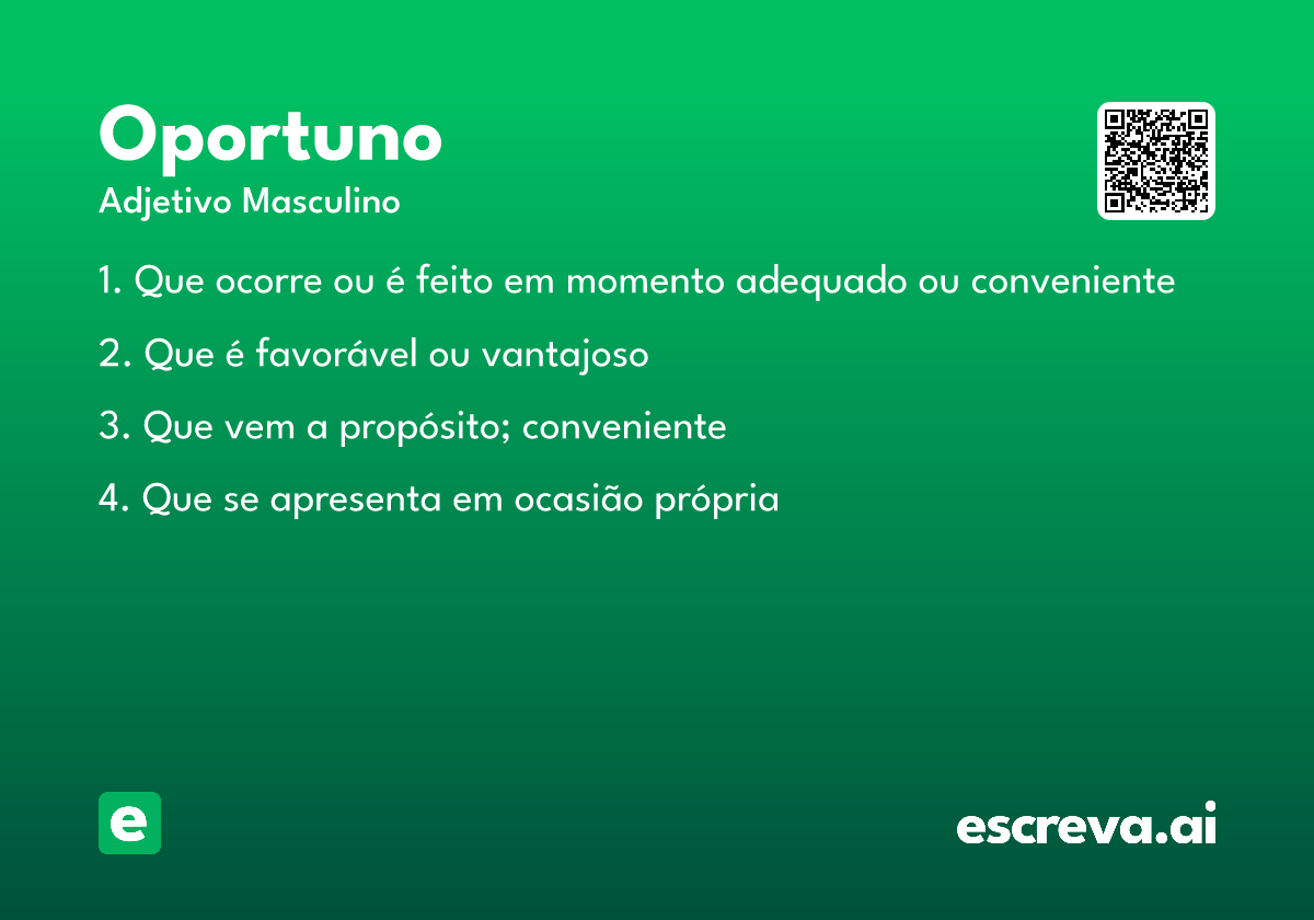 O termo "oportuno" é um adjetivo que carrega consigo a ideia de algo que surge no momento certo, adequado ou conveniente. É um conceito versátil com aplicações em diversos contextos da vida cotidiana, profissional e acadêmica.